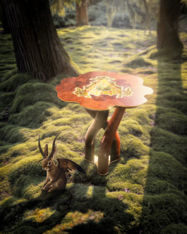 His work draws on mythological and anthropological narratives, brought to life through a close dialogue with some of Europe’s finest artisans in glass, wood, metal, and textile. He also collaborates with brands on design and art direction, always guided by a reverence for quality.